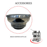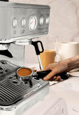 قطعات جانبی شامل فیلتر استیل، تمپر، برس، و ظرف شیر استیل