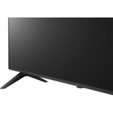 تلویزیون 65 اینچ ال جی UR8050 از زبان طراحی 3 Sided Cinema Screen برخوردار می باشد و قاب 3 طرف آن کمی باریک تر است. این نوع طراحی باعث شده تا تمرکز شما روی محتوای در حال پخش معطوف شود. در جعبه این تلویزیون، پایه رومیزی وجود دارد که به شکل دوشاخه می باشد. پایه این محصول از جنس پلاستیک فشرده و مقاوم است و توسط پیچ در دو طرف تلویزیون نصب می شود. این پایه ها تنها در 1 حالت نصب می شوند. لازم است به این نکته نیز اشاره کنیم که تلویزیون پیش روی شما قابلیت نصب روی دیوار نیز دارد اما براکت یا پایه دیواری مناسب را باید به صورت جداگانه خریداری نمایید. در جعبه این تلویزیون، گیره های مخصوص مدیریت کابل (Cable Management) و همچنین بست کمربندی ارائه می شود تا بتوانید کابل ها را مدیریت کرده و از شلوغی پشت تلویزیون جلوگیری نمایید. کابل برقی که به همراه این محصول ارائه می شود از نوع دوشاخه است و نیازی به تبدیل نخواهید داشت.
