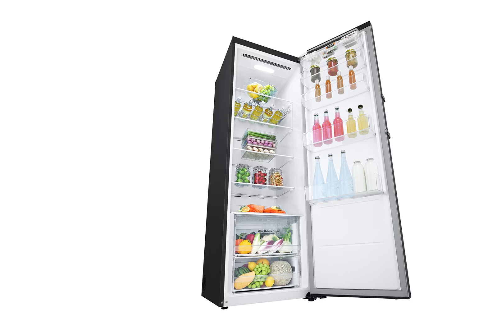 مواد غذایی داخل یخچال و فریزر دوقلو ال جی مدل B414 – F411 رنگ سیلور به دلیل کمپرسور اینورتر خطی که برای سرمادهی در آنها استفاده شده است، طول عمر خوبی دارند اما تکنولوژی دیگری که باز باعث افزایش بیشتر طول عمر آنها شده است، سرمایش همه جانبه به همه طبقات و قفسه ها به صورت یکسان است که به لطف خروجی های متعدد در سطح همه قفسه ها امکان پذیر شده است