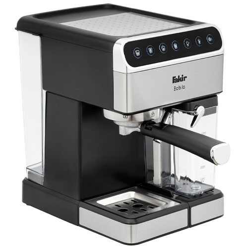 خرید و معرفی اسپرسوساز فکر ساخت شرکت fakirآلمان میباشد. این دستگاه تمام اتوماتیک و مجهز به صفحه نمایش ال سی دی لمسی میباشد که تنها با لمس صفحه تنوع بی نظیری از اسپرسو و ترکیبات آن را در اختیار کاربر میگذارد.این دستگاه دارای مخزن شیر می باشد و به صورت تمام اتوماتیک برای شما کاپوچینو و لاته به حالت چندرنگ و طبقه ای آماده میکند. فشار بخار دستگاه 15بار و جنس دستگاه از استنلس استیل میباشد.