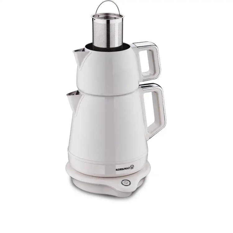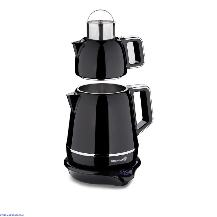چای ساز کرکماز مدل دمیکس A332 یکی از محصولات بسیار شیک و مدرن برند کرکماز میباشد. چای ساز برقی کرکماز دارای توان 2000 وات بوده و از نظر مصرف انرژی کم مصرف میباشد. ظرفیت قوری این ست 1.1 لیتر و گنجایش کتری آن 1.7 لیتر میباشد و شما با این چای ساز تنها با فشردن یک دکمه و در زمان کوتاه میتوانید 30 فنجان چای در یک بار استفاده آماده کنید و از نوشیدن چای در کنار اعضای خانواده و یا همکاران خود لذت ببرید. جنس بدنه چای ساز Korkmaz Demiks A 332 از استیل ضد زنگ 18/10 ساخته شده است. این استیل حاوی 18 درصد کروم و 10 درصد نیکل میباشد که وجود این آلیاژها موجب مقاومت در برابر خراش و سطح براق بدنه چای ساز خواهد شد. برای استفاده راحت تر از چای ساز کرکماز از طراحی ارگونومیک در دستگیرهها و حتی بدنه کتری و قوری استفاده شده است.