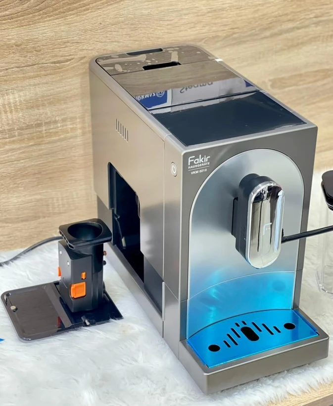 خرید و معرفی اسپرسوساز فکر مدل FAKIR VKM 6018 یک دستگاه تمام اتوماتیک با طراحی شیک و کارآمد است که امکان تهیه انواع نوشیدنیهای قهوه را با کیفیت عالی به شما میدهد. با توان مصرفی 1235-1470 وات و فشار بخار 19 بار، این دستگاه قادر است اسپرسو، کاپوچینو، لاته و لانگو را به راحتی در خانه برای شما آماده کند. اگر به دنبال یک اسپرسوساز حرفهای با امکانات و ویژگیهای ویژه برای تجربه قهوهای لذیذ و با طعم عالی هستید، اسپرسوساز FAKIR VKM 6018 بهترین انتخاب برای شما خواهد بود.