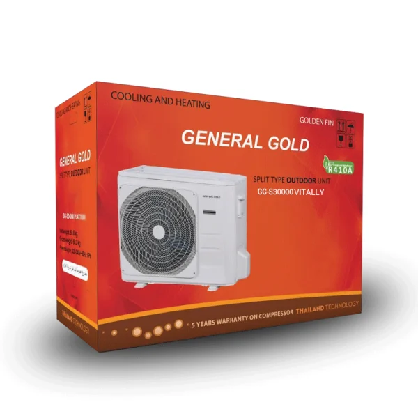 کولر گازی 30000 جنرال گلد به رنگ سفید و با طراحی زیبا و بروزی که دارد مورد توجه خریداران قرار گرفته است و به دلیل اینکه از نوع اسپلیت دیواری است قابل نصب بر روی دیوار است. کولر گازی علاوه بر یونیت داخلی که بر روی دیوار نصب می شود دارای یونیت خارجی نیز میباشد و این یونیت در خارج از ساختمان قرار میگیرد و به دلیل اینکه در معرض نور خورشید و سرما است باید از جنس استیل مرغوب و ضد زنگ باشد تا مشکلی ایجاد نشود. همه این موارد در این کولر گازی GG-MS30 VITALLY جای داده شده است و به نکات مثبت آن افزوده است.