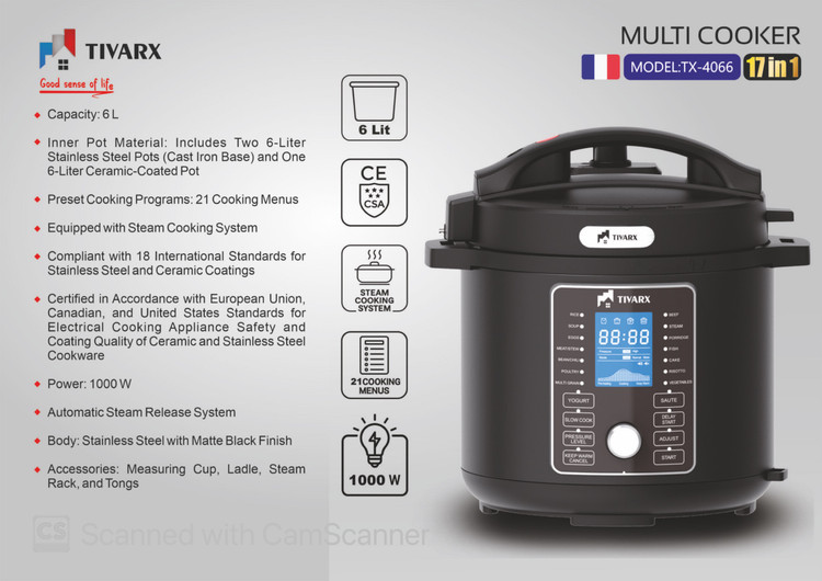 مولتی کوکر(زودپز برقی) 17 کاره تیوارکس مدل TX-4066