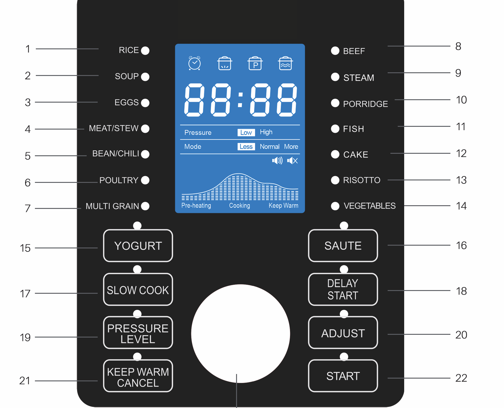 پنل دیجیتال این دستگاه فراتر از یک نمایشگر ساده است. با ۲۱ عملکرد مختلف، شما کنترل کاملی بر فرآیند پخت دارید.