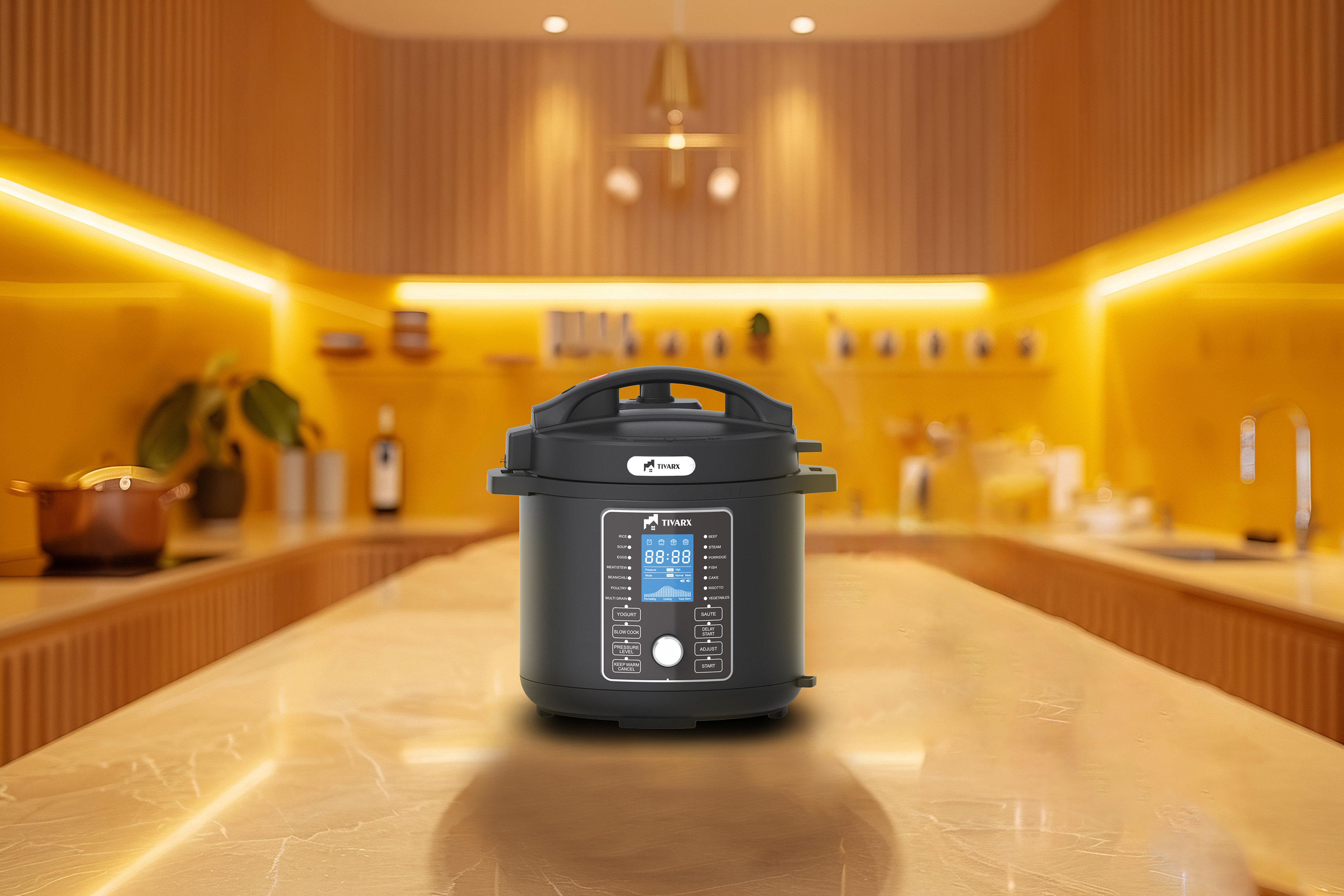 با Tivarx TX-4066 شما فقط یک زودپز ندارید؛ بلکه یک آرامپز، بخارپز، پلوپز و حتی دستگاهی برای پخت تخصصی مواد سخت (مانند حبوبات و گوشتهای دیرپز) در اختیار دارید. سیستم پنل دیجیتال آن به شما اجازه میدهد تنها با لمس یک دکمه، برنامه پخت مورد نظر خود را فعال کنید.