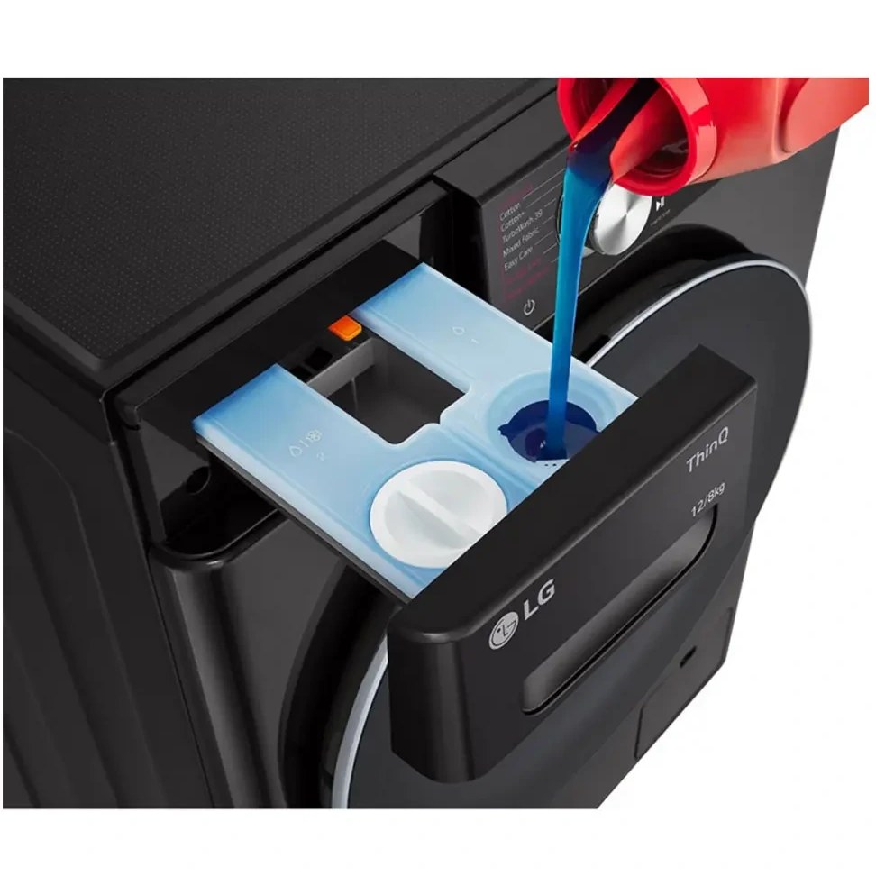 ماشین لباسشویی 12 کیلویی و خشککن 8 کیلویی الجی مدل F4V9BDP2EE یکی از قدرتمندترین و پیشرفتهترین محصولات سالهای اخیر برند LG است که با ترکیب فناوریهای مدرن، طراحی جذاب، امکانات هوشمند و کیفیت ساخت ممتاز، به یکی از پرفروشترین مدلهای بازار ایران تبدیل شده است. این دستگاه با بدنه دودی (Graphite) و طراحی مدرن نسل جدید ThinQ، علاوه بر زیبایی، کارایی بسیار بالایی ارائه میدهد. یکی از مهمترین جذابیتهای این مدل، وجود دو قابلیت کاربردی در یک دستگاه است: شستشوی 12 کیلوگرم لباس + خشککن کامل 8 کیلوگرمی. این یعنی میتوانید در یک مرحله، لباسها را شسته و کاملاً خشک تحویل بگیرید، بدون آنکه نیاز به پهنکردن یا استفاده از خشککن مجزا داشته باشید.