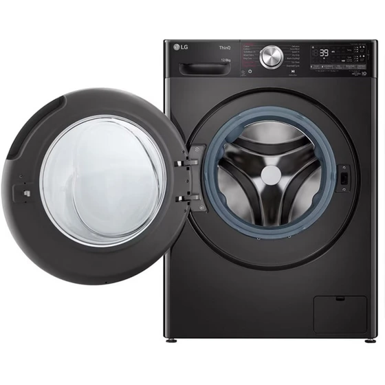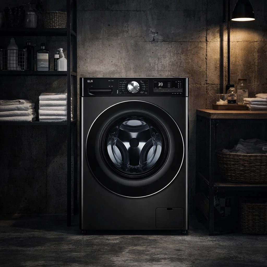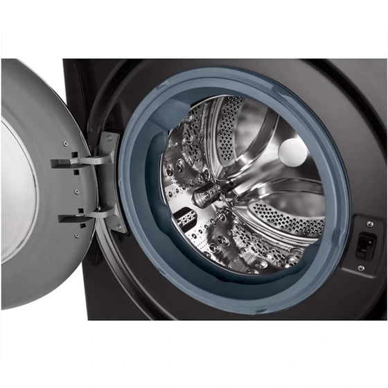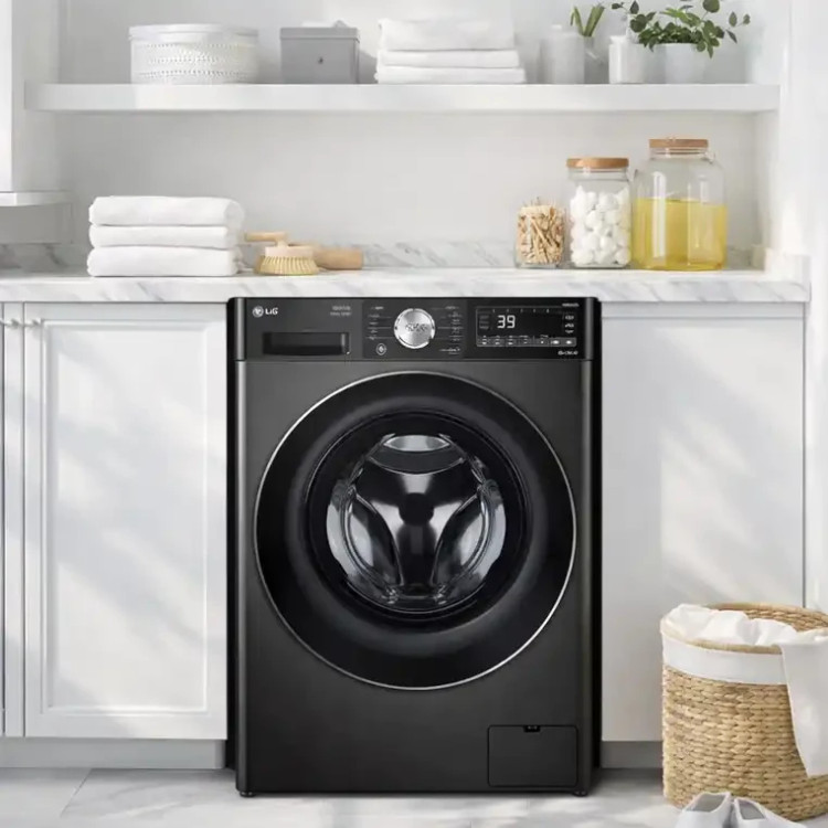اولین چیزی که در مواجهه با ماشین لباسشویی الجی مدل F4V9BDP2EE جلب توجه میکند، طراحی بسیار مدرن و جذاب آن است. رنگ بدنه این دستگاه مشکی دودی (Black Steel) است که جلوهای لوکس و متفاوت به آشپزخانه یا لاندری روم شما میدهد.